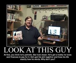 Unfortunately, when most people see someone dressed up like sonic the hedgehog or introduce us to thier MASSIVE "Magic: the gathering" card collection, the usual reaction isn't admiration for loyalty. It's more like "holy sh**, this guy has no life!"
